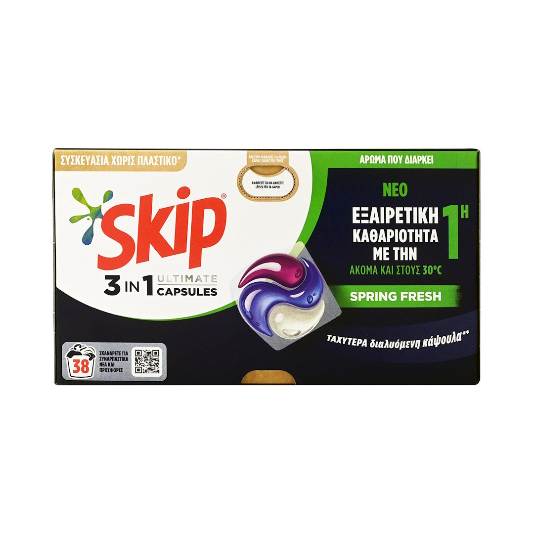 Απορρυπαντικό Πλυντηρίου Ρούχων σε Κάψουλες SKIP Trio Spring Fresh (38μεζ) (802gr)