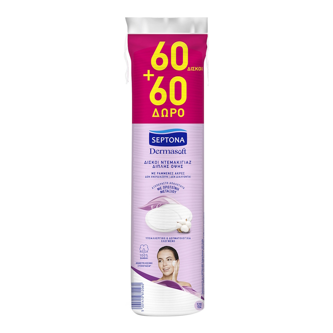 Δίσκοι Ντεμακιγιάζ Διπλής Όψης με Ραμμένες Άκρες SEPTONA Dermasoft (120τεμ) (60+60 Δώρο)
