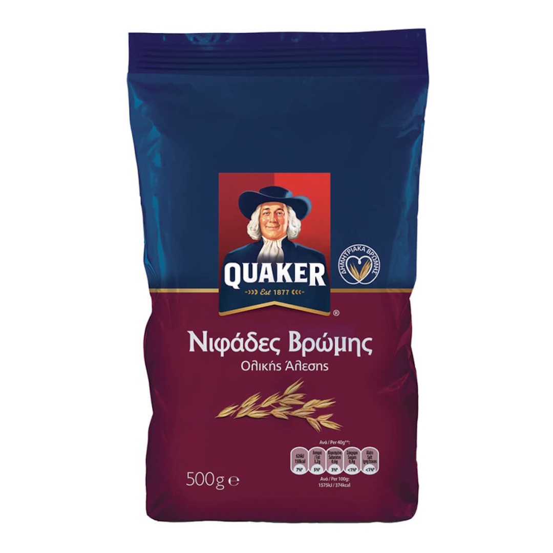 Νιφάδες Βρώμης Ολικής Άλεσης σε Σακούλα Αλουμίνιου QUAKER (500gr)