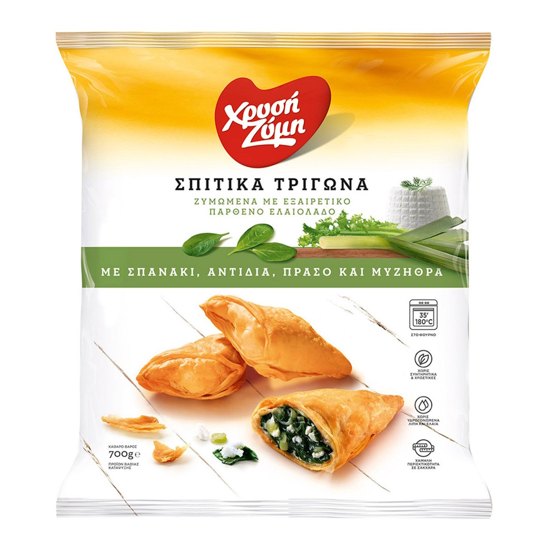 Πιτάκια Κατεψυγμένα ΧΡΥΣΗ ΖΥΜΗ Σπιτικά Τρίγωνα με Σπανάκι Αντίδια Πράσο & Μυζήθρα (700gr)
