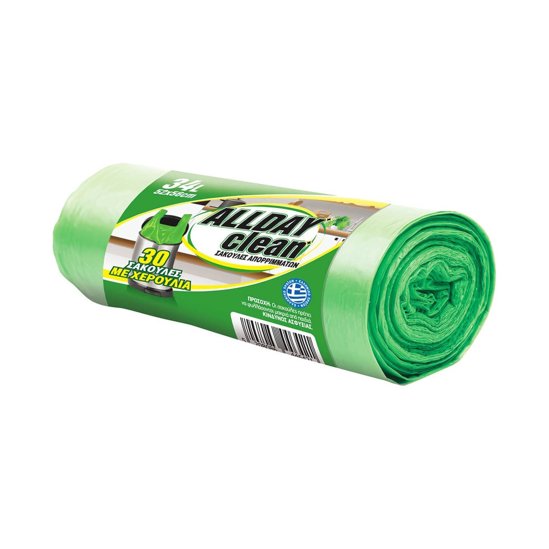 Σακούλες Απορριμάτων με Χερούλια ALLDAY Clean (34L) (30τεμ 52x56cm)