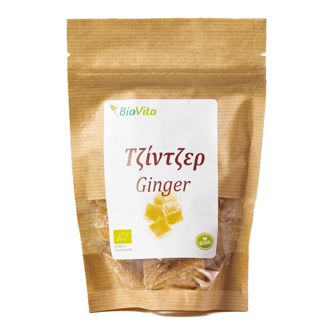Τζίντζερ σε Κύβους με Ακατέργαστη Ζάχαρη BIOVITA (100gr)