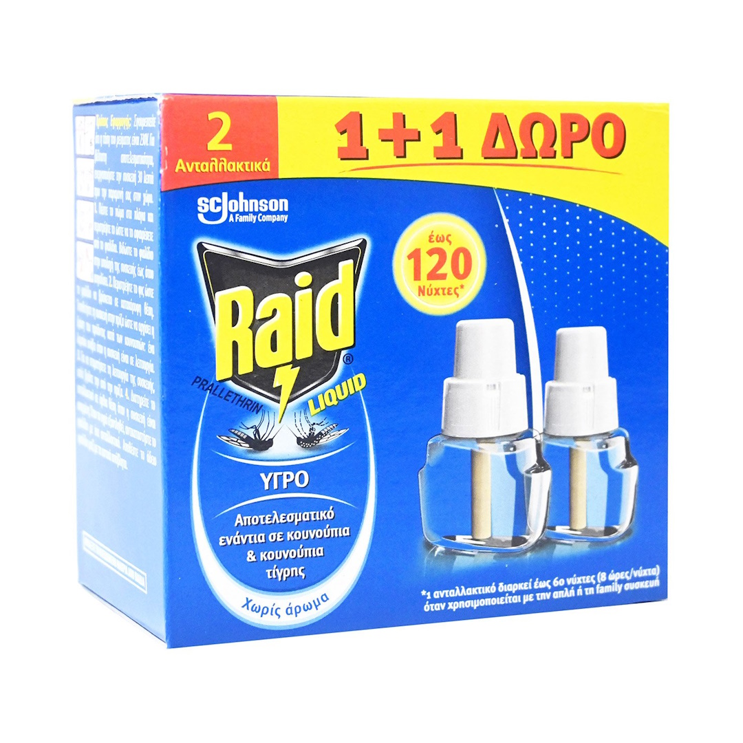 Υγρό Ανταλλακτικό Εντομοαπωθητικό RAID 120 νύχτες (2x36ml) (1+1 Δώρο)